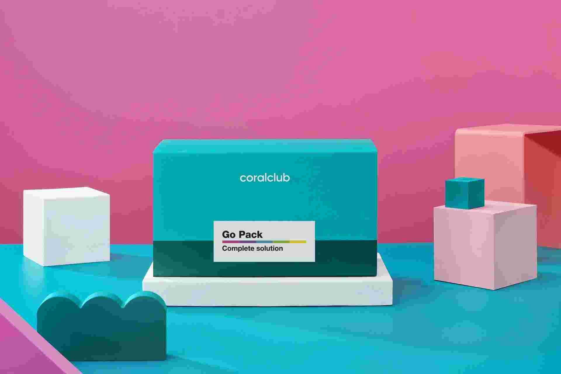 „Go Pack” to harmonijne połączenie pięciu produktów Coral Club International, które wspierają funkcjonowanie całego organizmu.